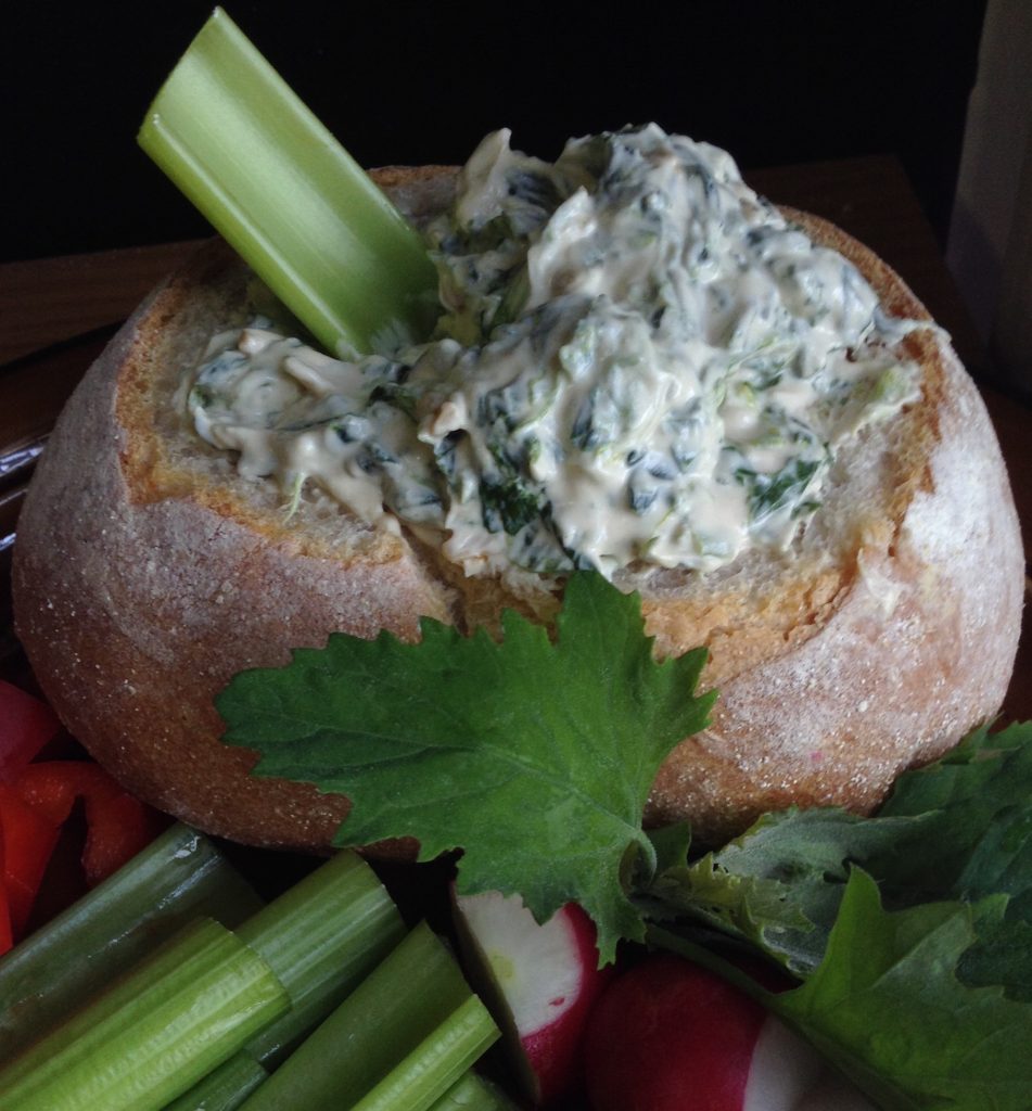 In the 1970's, my parents’ generation made a spinach dip in a bread bowl that involved dumping together powdered soup mix, frozen spinach from a ...